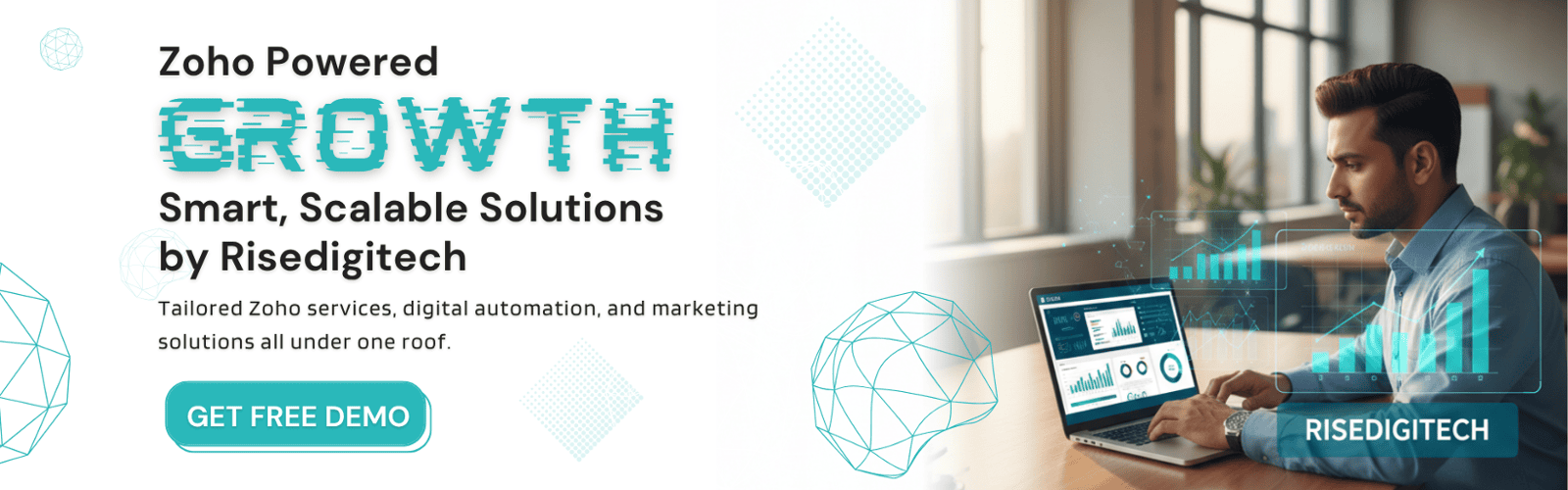 At Risedigitech, we offer tailored Zoho services designed to align perfectly with your business goals. As a certified Zoho authorized partner in Indore, we specialize in everything from Zoho CRM customization to advanced workflow automation, helping businesses streamline operations, boost productivity, and achieve measurable growth.